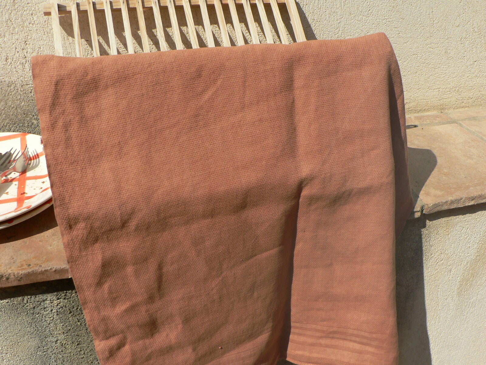 Grande serviette (60x70 cm) en coton et lin teinte au cachou.