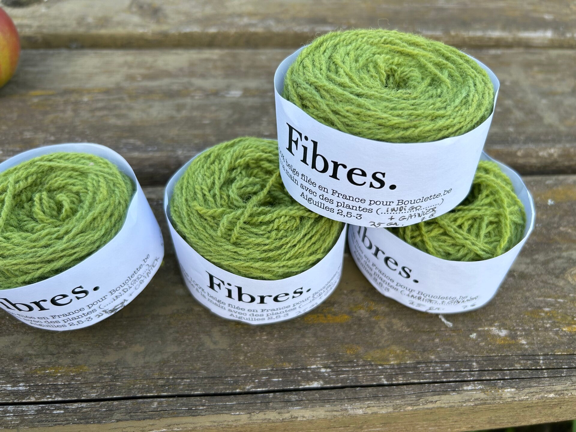 Laine teinte naturellement avec de l'indigo et du gainier.